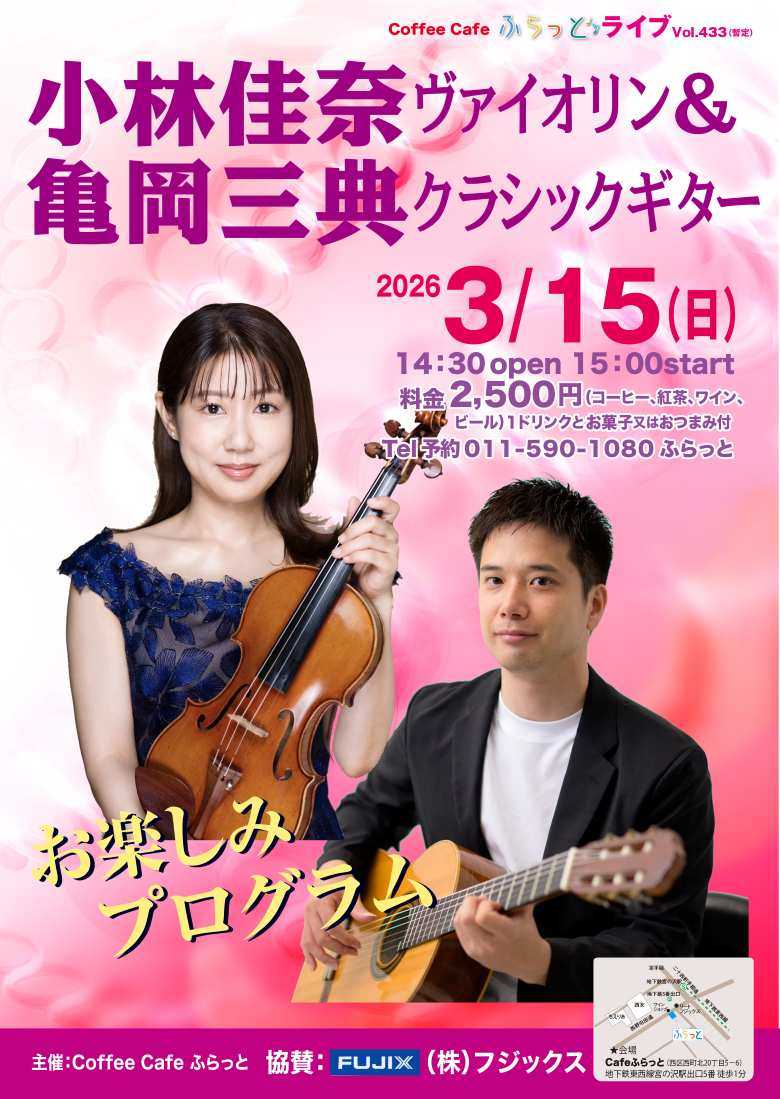 Cafeふらっと小林佳奈バイオリン&亀岡三典クラシックギターライブ