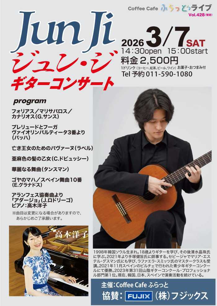 Cafeふらっと ジュン・ジ(Jun Ji )クラシックギターコンサート